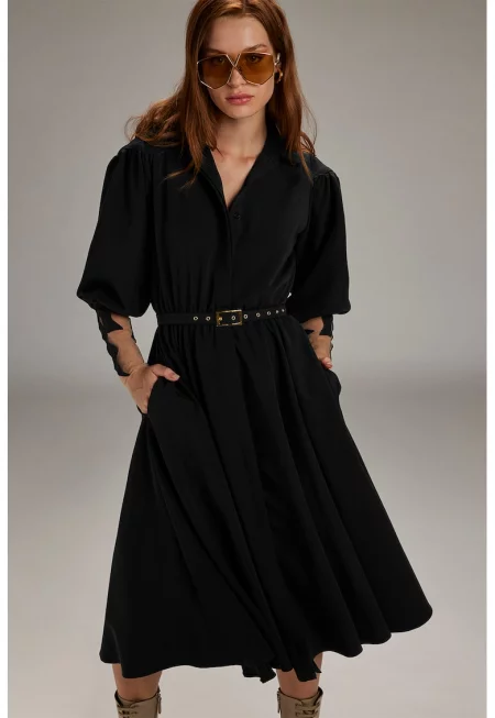 Миди рокля с шпиц - Черен