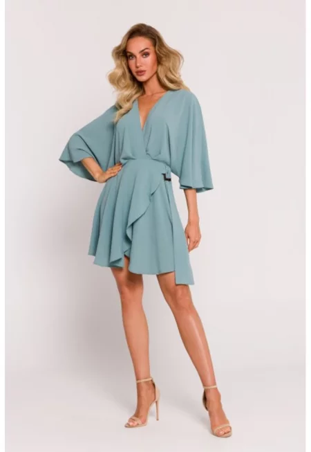 Парти мини рокля с кимоно ръкави - Зелени аспержи