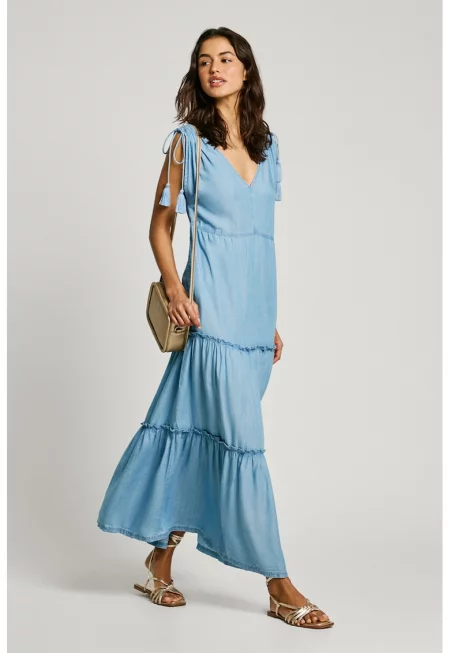 Дълга рокля с лиосел - Пастелносин