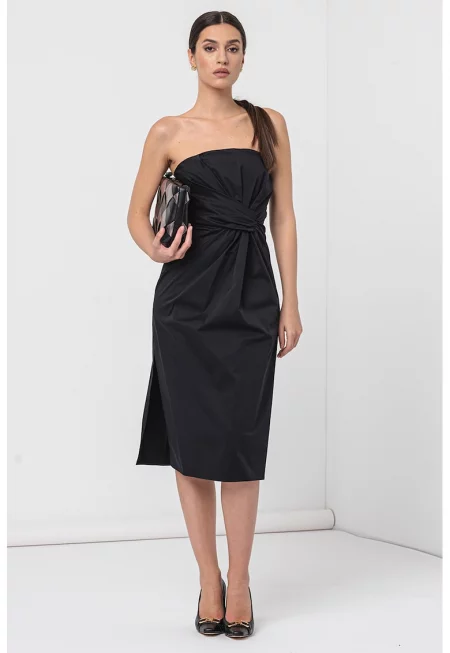 Рокля тип молив с памук и набиране - Черен