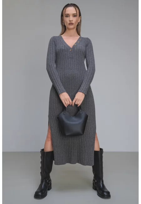 Рокля Izabel с вълна с цепки встрани - Сив