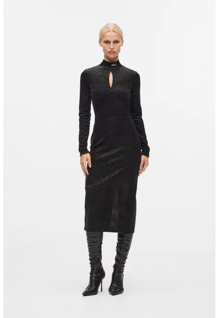 Кадифена миди рокля - Черен