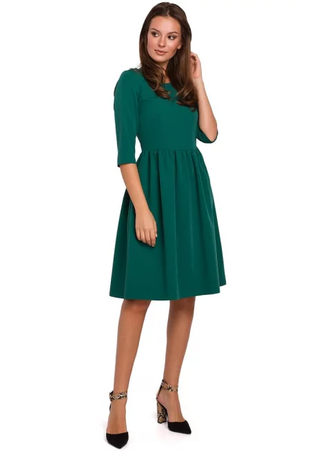Рокля Sting с шпиц и колан - Тъмнозелен