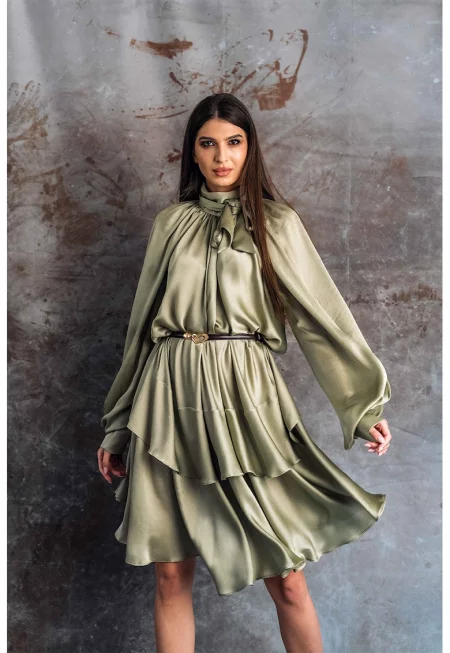 Къса рокля Sunna с коприна - Зелени аспержи