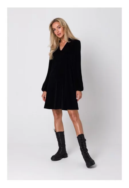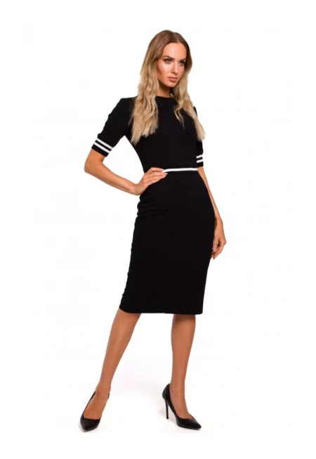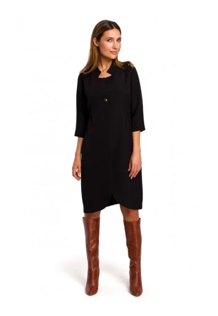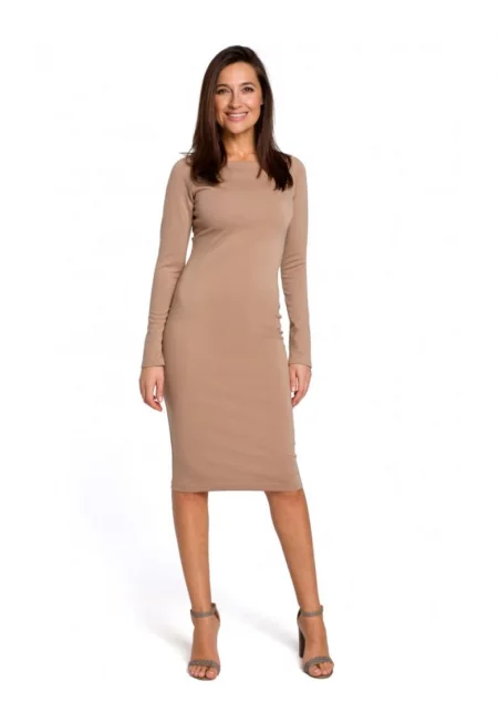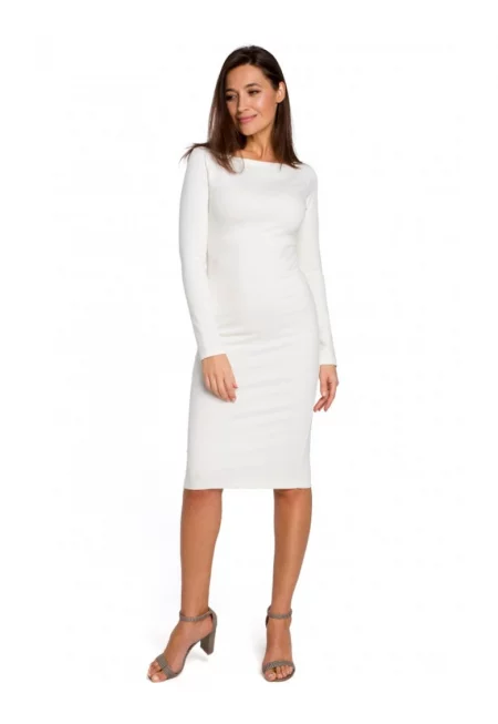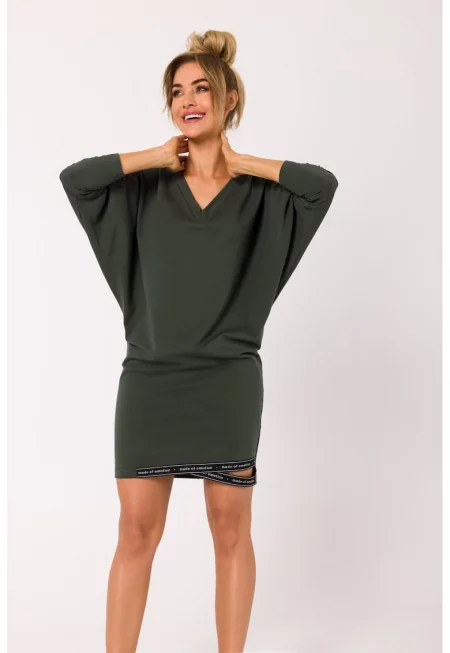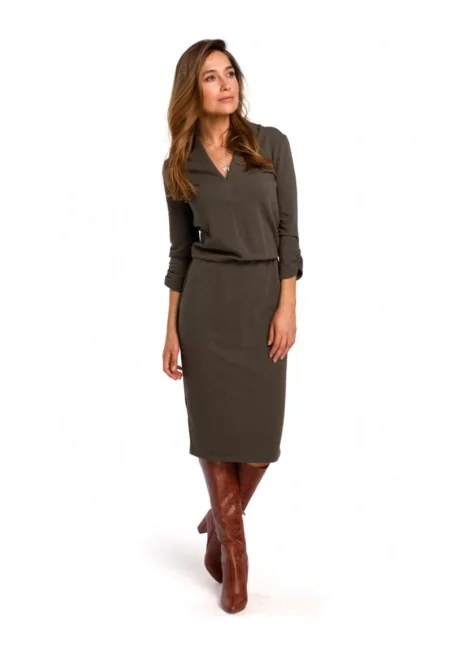 Дамска рокля - с ръкав - памук - еластан - бяла - черна - Army Green