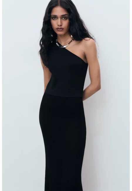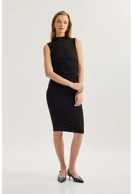 Прилепнала рокля с модал и цепки встрани - без ръкави