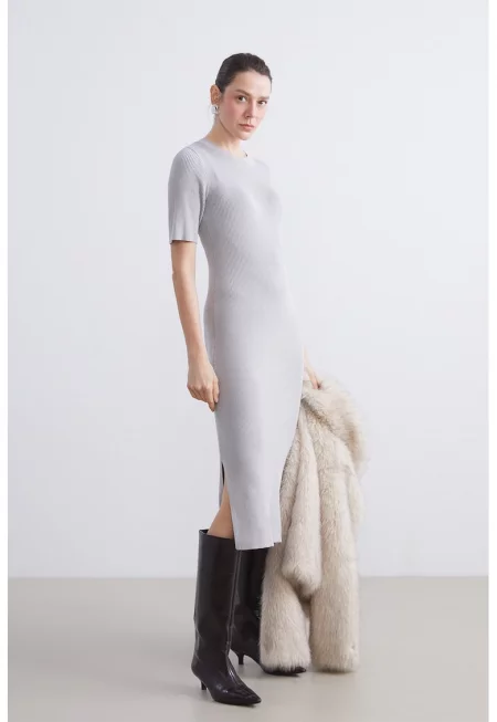 Рипсена рокля с дълги ръкави и цепка встрани