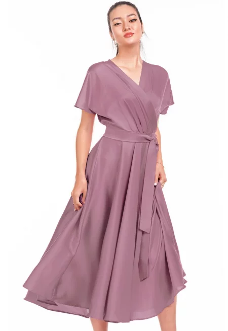 Разкроена рокля със застъпено деколте и шлиц
