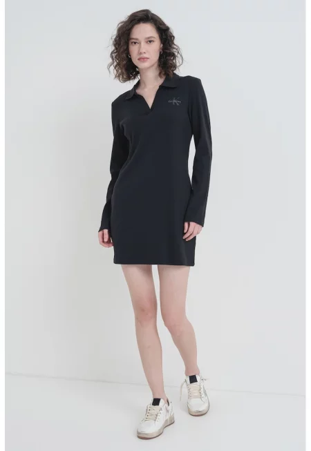 Къса рокля с яка и дълги ръкави