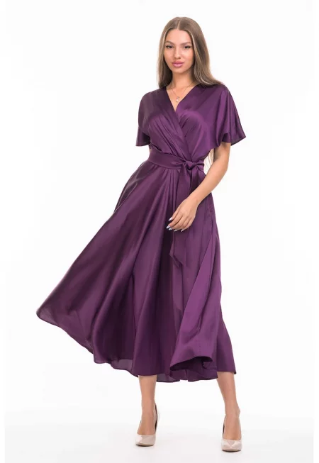 Разкроена сатинирана миди рокля