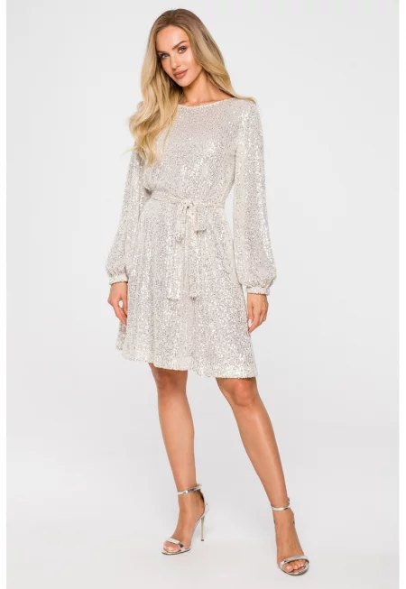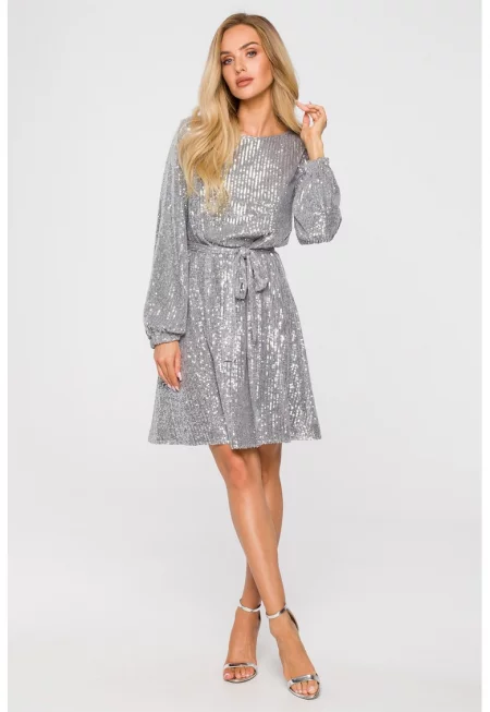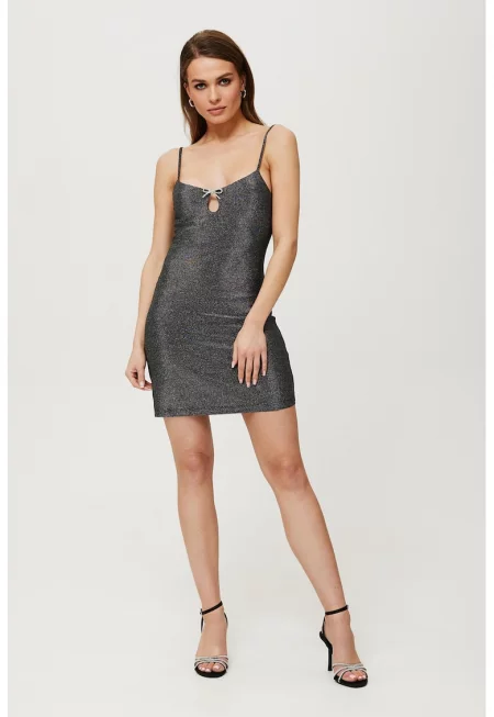 Дамска рокля - метално странично издърпване - полиестер - сиво - 95978
