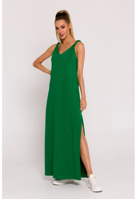 Дамска рокля - макси с дълбоко деколте на гърба - полиестер - зелена