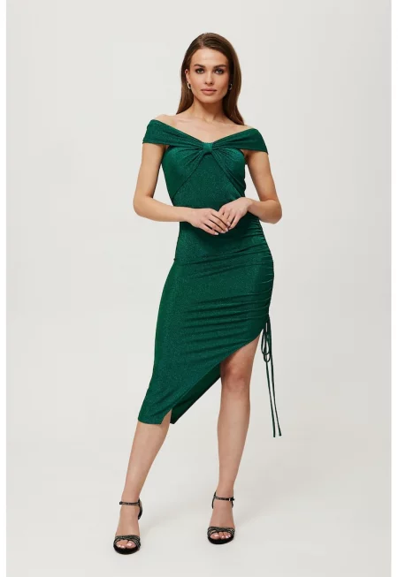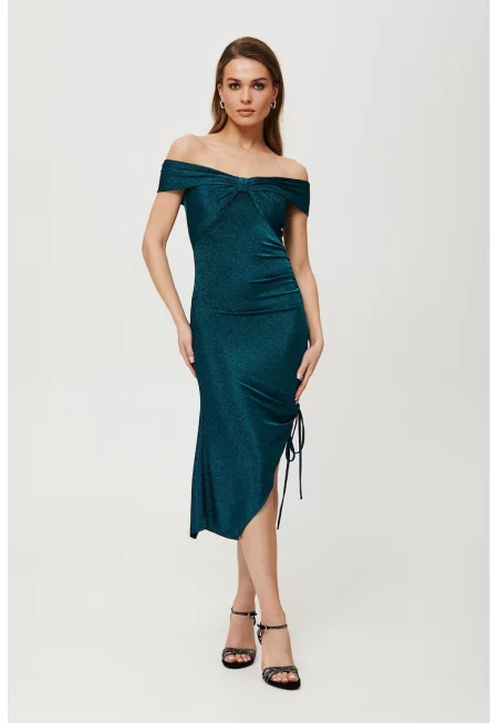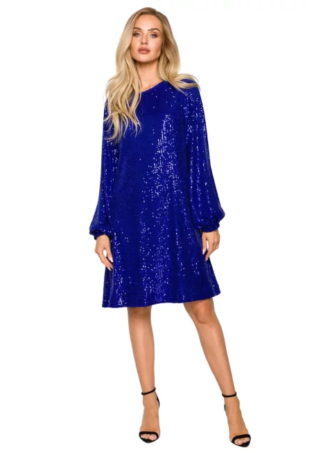 Дамска рокля металик - издърпване настрани - полиестер - син