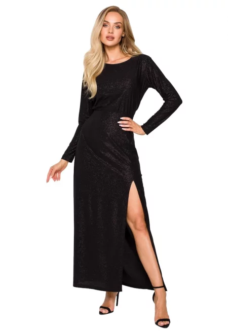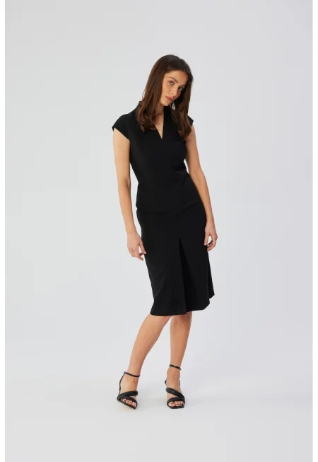 Дамска рокля тип молив с двойно деколте - полиестер - черна