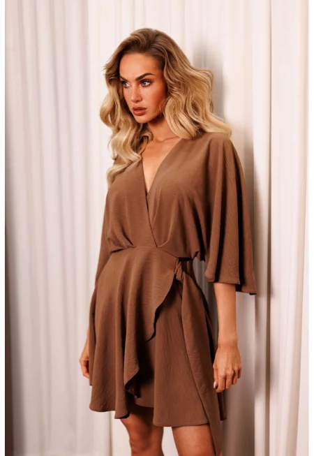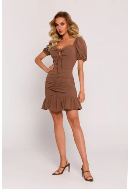 Мини рокля с връзка на деколтето - Тъмнокафява -