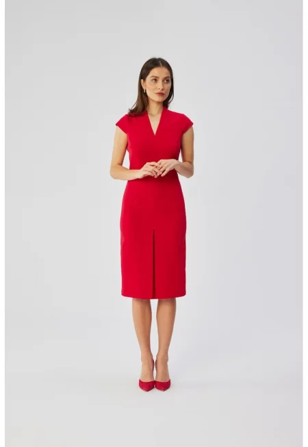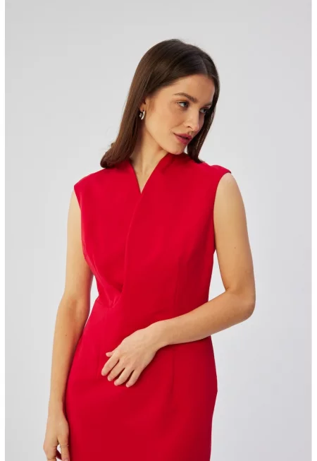 Дамска рокля - тип молив - с двойно деколте - Полиестер - Червена
