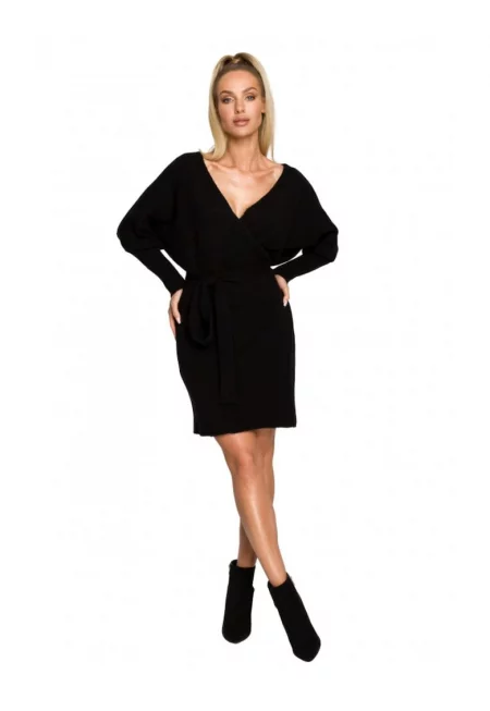 Рокля-пуловер - V-образно деколте - акрил - вълна - черно