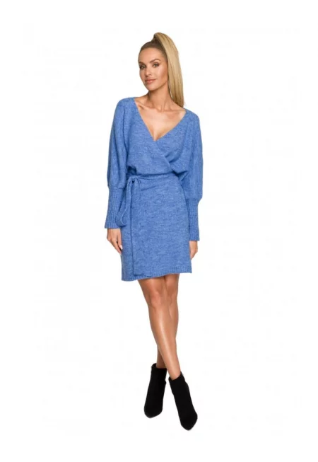 рокля-пуловер - V-образно деколте - акрил - вълна - синьо