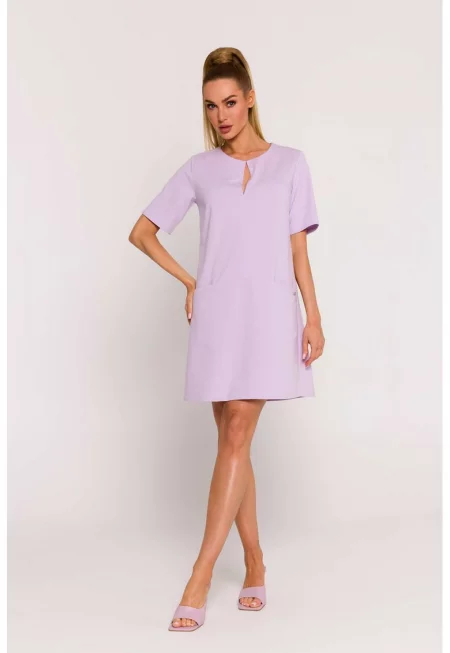 Дамска рокля - мини с разкроена долна част - Полиестер - 49754