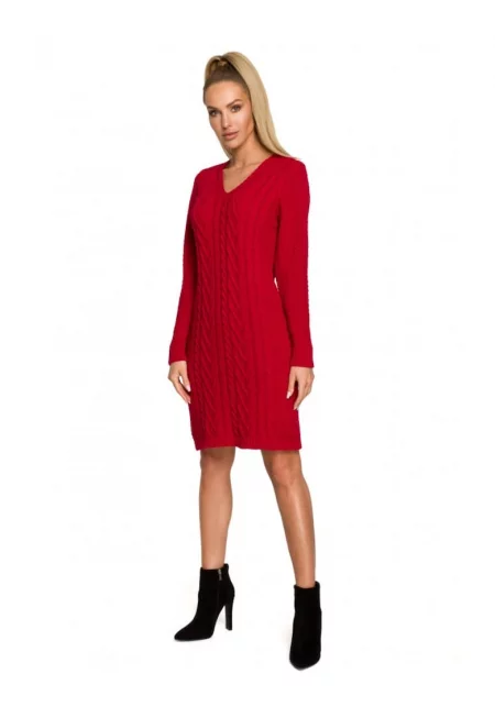 Рокля-пуловер - V-образно деколте - акрил - найлон - червено