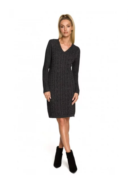 рокля-пуловер - V-образно деколте - акрил - найлон - сиво