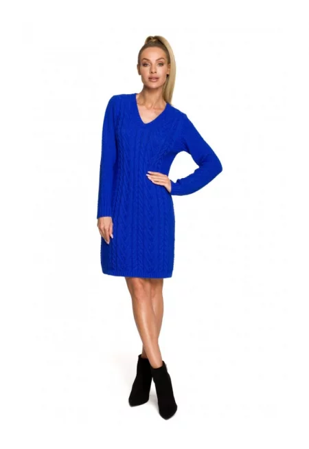 рокля-пуловер - V-образно деколте - акрил - найлон - синьо