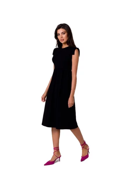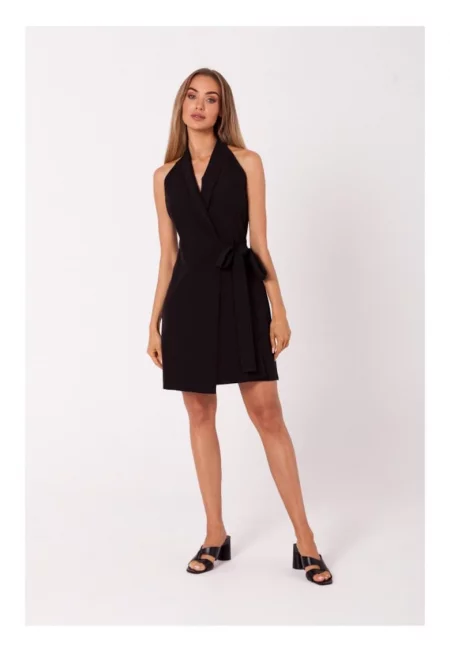Дамска рокля тип молив с двойно деколте - полиестер - черна