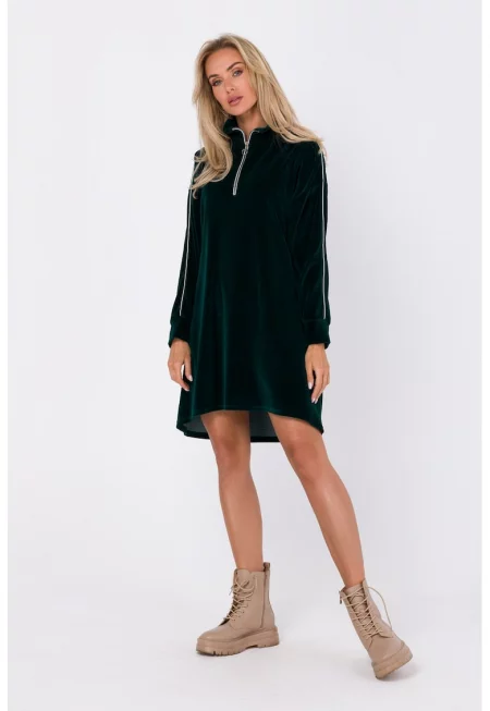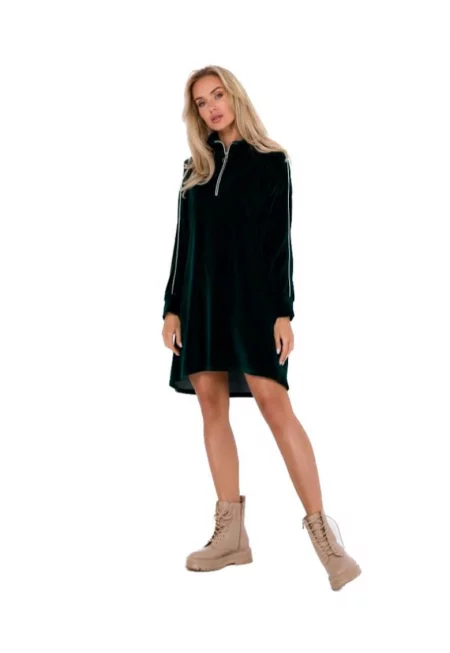 рокля-пуловер - V-образно деколте - акрил - вълна - зелено