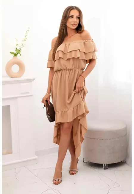 Асиметрична рокля с волани - Един размер