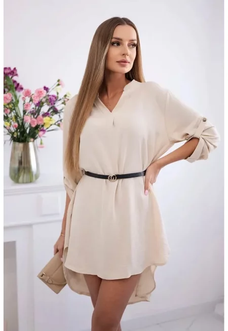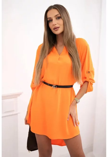 Рокля с V-образно деколте и колан - Един размер