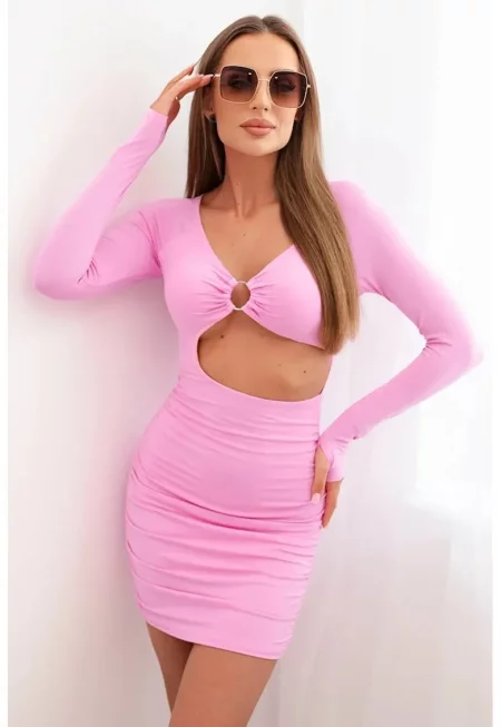 Рокля с изрез на талията и декоративен пръстен - Един размер