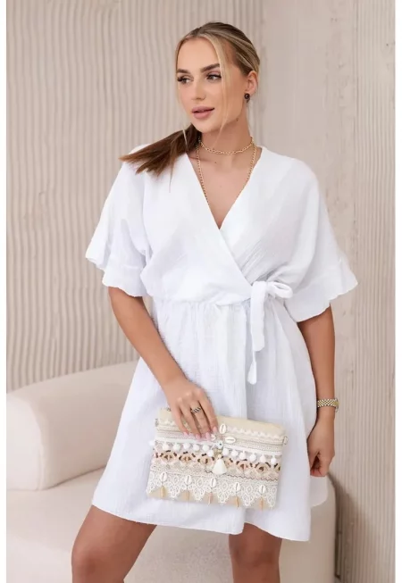 Рокля с прехвърляне и колан на талията - Един размер