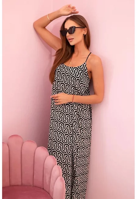 Рокля с тънки презрамки и геометричен модел - Един размер