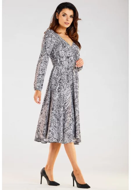 Миди рокля принт дълъг ръкав A466