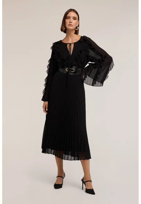 Рокля с дълги ръкави и рюш встрани