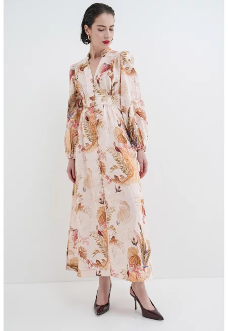Десенирана миди рокля с дълги ръкави