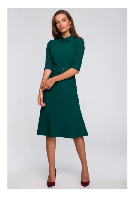 Рокля с яка и преден цип - зелена -