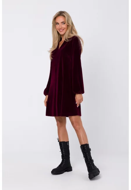 Кадифена рокля с V-образно деколте -
