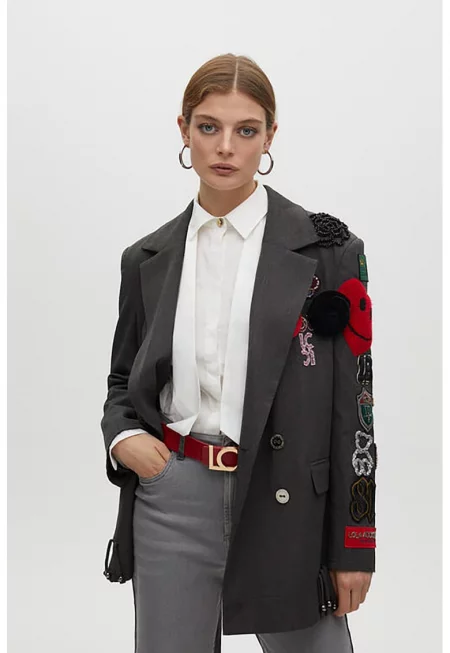 Елегантен потник със зигзагообразен десен SLIM FIT OM-BLZV-0143