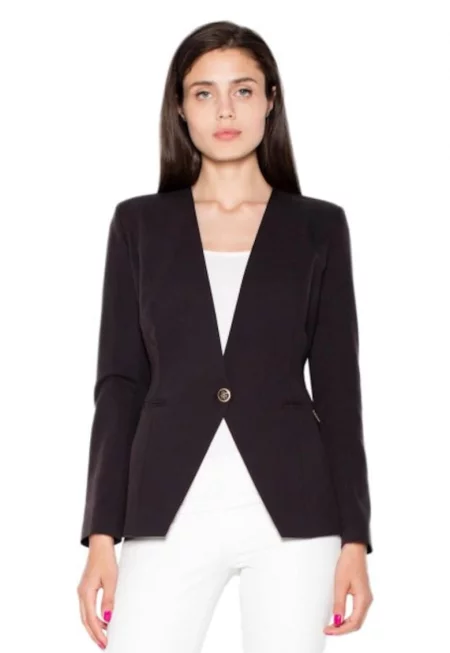 Вталено сако без ревери - Черно -