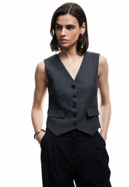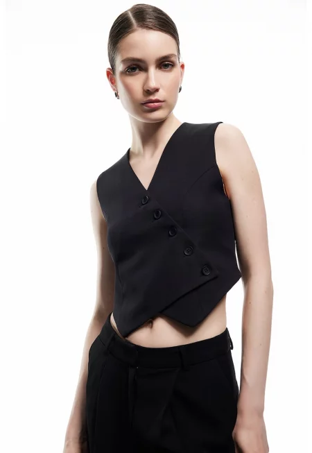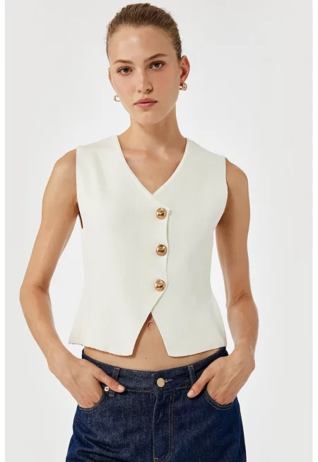 Къс елек с контрастни копчета