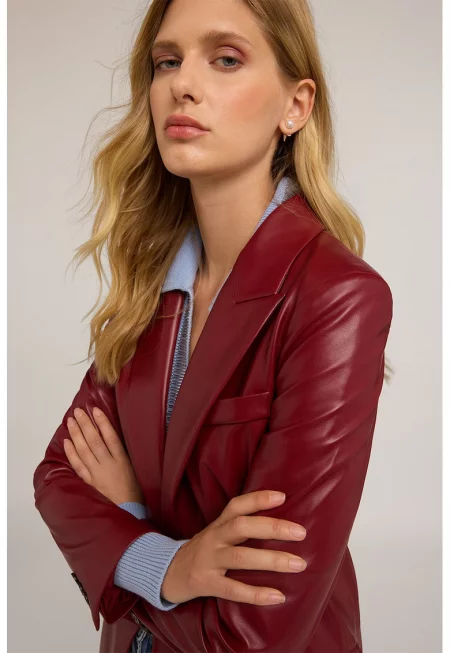 Сако от еко кожа с остри ревери
