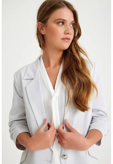 Дамско яке - 304695827 - Полиамид/Памук - Сив