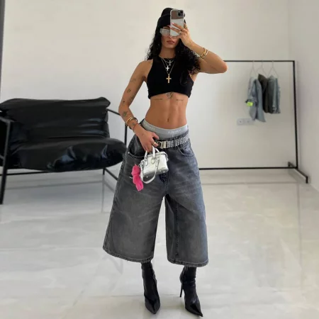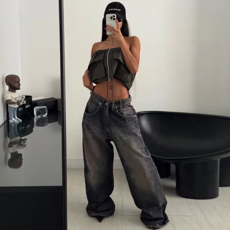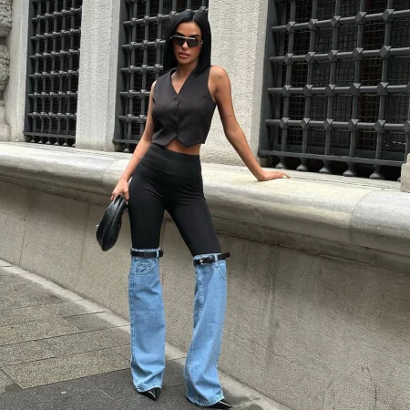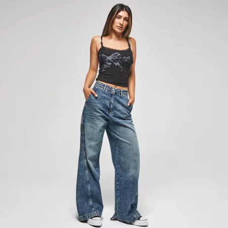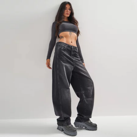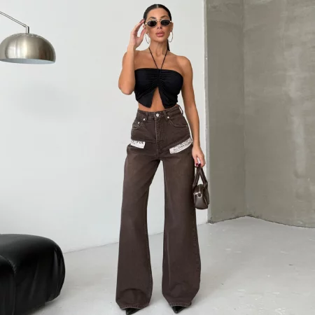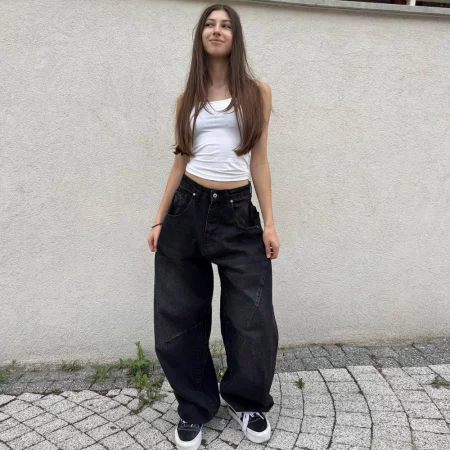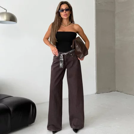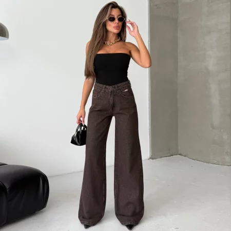 Дамски дънки с висока талия, цвят черен, Palazzo Fit, Ft8569