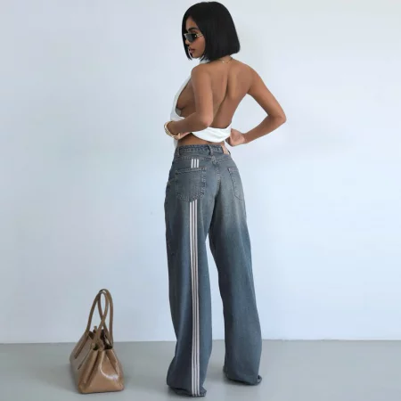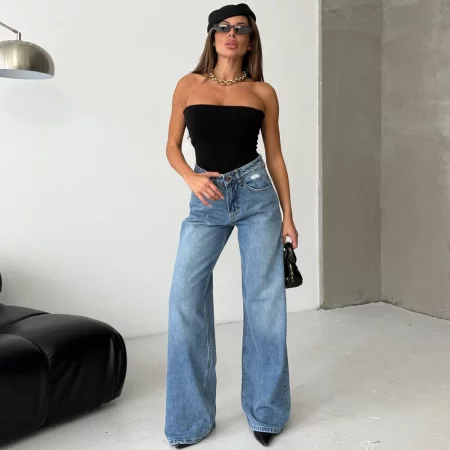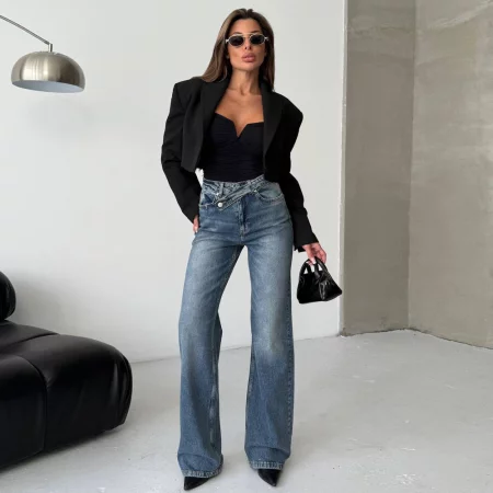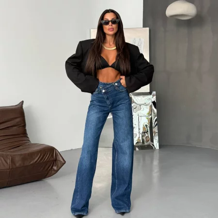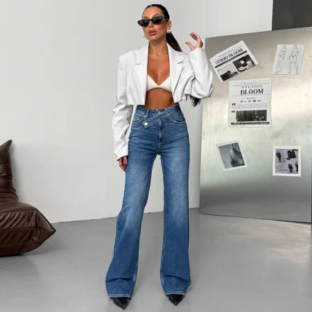 Дамски дънки с висока талия, цвят син, Palazzo Fit, Ft8548