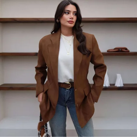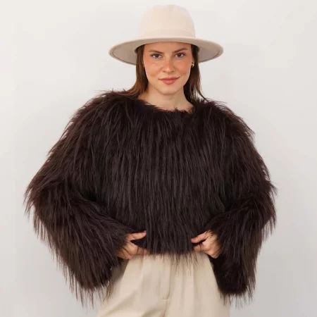 Пухена блуза, еко косъм, цвят кафяв, Ft8666