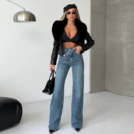 Дамски дънки с висока талия, цвят черен, Palazzo Fit, Ft8545