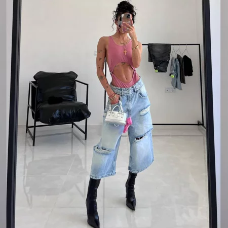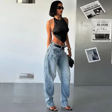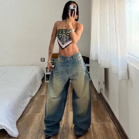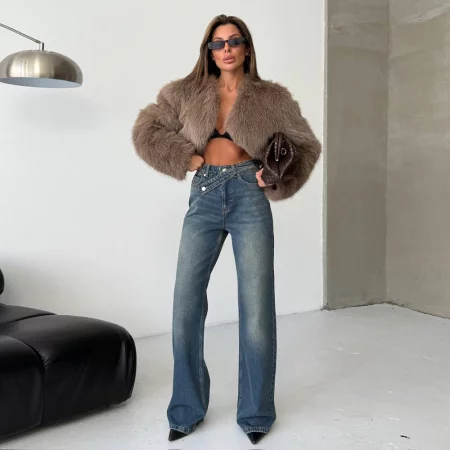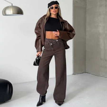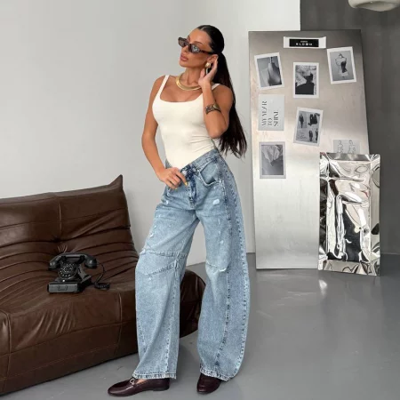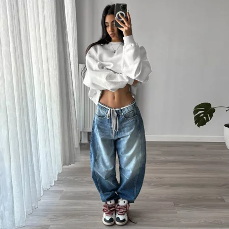 Дамски дънки с висока талия, кройка балон, Ft8635