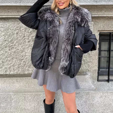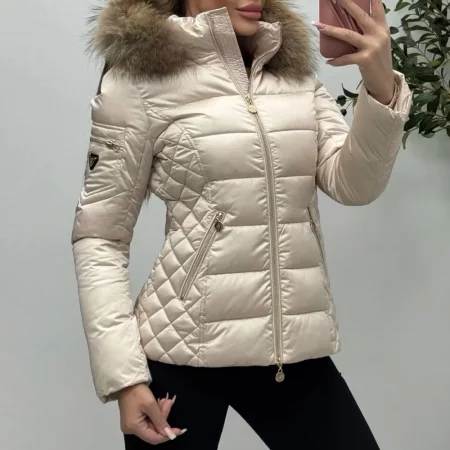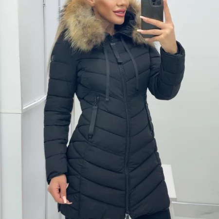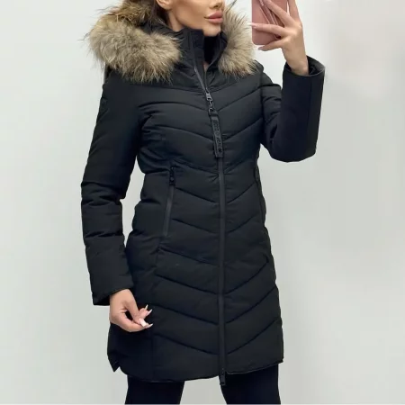 Зимно дамско яке, естествен косъм на качулката, Ft8658