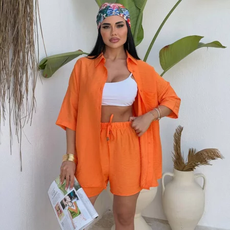 Kомплект, сет риза с къс панталон, цвят оранжев, Ft8487